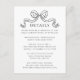 Complete your Vintage Elegance Bow wedding suite with our coordinating details enclosure card, a refined addition featuring the same exquisite black line art bow. This card serves as a comprehensive guide to essential wedding details, including hotel accommodations, wedding reception dinner information, and your personalized wedding website URL. The classic black and white design ensures a seamless integration with the overall aesthetic. Elevate your guests' experience with the Vintage Elegance Black Bow Details Card, where every piece of information is presented with the same timeless grace that defines your special day. Ensure that your loved ones are well-informed and ready to celebrate the enchanting moments of your wedding festivities.