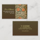 Vintage brown business card featuring orange flowers pattern.