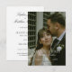 This vintage, stylish modern photo save the date wedding card features elegant white text with a 'SAVE THE DATE' message and space for your names, date and wedding locale below it. The default card shape is standard sharp corners, but this design also looks great with rounded corners, so try both looks in editing mode and see which strikes your fancy! On the back, we've set the background as transparent to let the color of the paper simply serve as the base tone. But you can edit this and choose a specific background color if you prefer. You can also edit the text to suit your needs. You might want to delete a text field that you don't need, or change the color or font of some text. We've chosen black for the text on back. But you might chose another color or change the font or text size. Use the intuitive design tools, your favorite photo and your inspiration to make this stylish wedding save the date card uniquely yours. And please check our store for a selection of elegant vintage wedding suites!