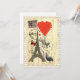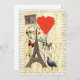 Funny cute girly romantic vintage elephant animal, with red valentine heart shaped balloons, with the Eiffel tower. Paris, France on a retro antique postcard design, with peacock and butterfly. Visit the VINTAGEPRINTS STORE for more fun vintage illustration, romantic valentines day gifts.
