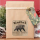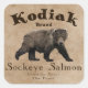 La moitié gauche du étiquette d'une boîte du mythique Saumon Kodiak Brand Sockeye vers 1879. L'image monochrome (brun) présente un ours Kodiak (Ursus arctos middendorffi). Le texte "Kodiak Brand Sockeye Saumon" et "Table des matières sur une livre" apparaît également. Il est rare de trouver un étiquette de cette époque en si bon état.