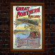 • This high-quality retouched illustration is a vivid reproduction of a classic pre-1929 advertising poster. This artwork features a steam train speeding across a viaduct above a coastal town and sea, with bold lettering and two heraldic shields, depicted in a classic Edwardian poster art style.