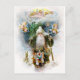 A charming vintage Christmas postcard featuring Father Christmas on his way through the snow loaded with toys and surrounded by little angels.