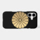 Protect your Apple iPhone with this tough Case-Mate iPhone XS Case with this famous Japanese Kiku Chrysanthemum Mon in faux gold (BE AWARE, this is a photo image!). The background is black.