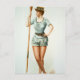 A vintage reproduction of an 1889 lithograph depicting a female rower holding an oar prited by D. Buchner & Co.