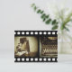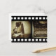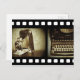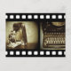 A vintage camera and typewriter designed to look like film makes a fun postcard. The black and life photographic design is fun and unique.
