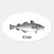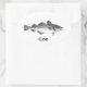 This vintage fishing - seafood sticker features an Atlantic cod line art illustration. Cod were crucial in the development of many of North America's most famous fishing communities. Atlantic cod are marketed by sizes; small individuals are called scrod while the largest are called cows.