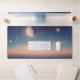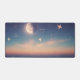 Retro illustration of a stylized moon surrounded by geometric stars, in a soft cosmic mood.