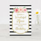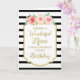 Birthday card for niece with vintage pink and peach watercolor flowers, black and white stripes, gold rustic frame, rustic handwritten style text and thoughtful verse.