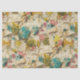 A richly layered pattern tissue paper featuring vibrant floral motifs in teal, yellow, and pink over a distressed, cracked parchment background. The design blends botanical illustrations with mixed-media collage elements, faint typography, and textured paper folds, creating an antique, weathered aesthetic.