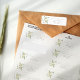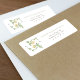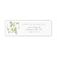 This custom return address label marries the timeless elegance of vintage floral design with modern practicality. The label features a charming wreath of green leaves and golden yellow roses, creating a delicate frame around the initials, which adds a personalized touch reminiscent of traditional monograms. The clear, legible font presents the return address in a classic layout, ensuring ease of use while maintaining a sophisticated aesthetic. These labels are perfect for adding a bespoke element to your wedding correspondence, inspired by the naturalistic beauty celebrated in the Arts and Crafts movement.