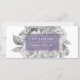 Chic gift certificate card displays two lines of custom text on a sheer lilac purple element, nestled on a bed of vintage style peony flowers in soft black and white. Add your desired gift certificate wording and business contact information on the reverse side. An elegant choice with a soft pop of colour for salons, makeup artists, spas or any business.