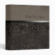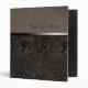 A beautiful vintage floral design across the bottom in soft earth brown. A black satin ribbon across the edge. Soft taupe suede adorns the top. A place to add your own text completes this very elegant binder.