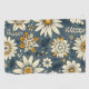 A detailed vintage floral pattern with cream and yellow flowers on a blue background.