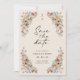 The Vintage Floral Photo Save the Date is an elegant and personalized way to announce your wedding. This card features stunning hand-painted watercolor wildflowers and a monogram on the front, with space for three of your favourite engagement photos on the back. The warm, earthy tones and rustic elements create a harmonious design that perfectly suits a modern boho-chic wedding. Set against a lovely earth-tone beige-tan background, this card is both captivating and memorable, ensuring your guests mark their calendars for your special day.