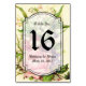 Vintage Floral Rose Wedding Table Number Card. Old English script font text. By BlissfulWedding © at Zazzle.
