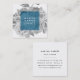 Elegant vintage style floral business cards in a unique square shape feature a posy of black and white watercolor peonies with your name or company name and title displayed on a sheer cerulean blue teal overlay. Add your full contact information to the reverse side. Perfect for wedding planners, event planners and other special occasion professionals.