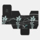 This design, called Vintage Floral Trim in Black and Ice Blue, has a striking black background. At the bottom there is a white wavy stripe pattern with three graphic flower designs in an ice blue colour. The vintage design that decorates this ensemble is sure to reflect your distinguished style. This set has invitations, save the date cards, response cards, thank you cards, table number tent cards, envelope seals, wine labels, binders, return address labels and many more day-of wedding stationery pieces, favours, and gifts available. Use the envelope seal stickers for any of your DIY gifts - these are available in both large and small sizes! All elements are printed on our high quality products, they do not include any real gold, jewels, embossing, or other textile elements. All designs are copyright Noteable Expressions, Inc. All rights reserved.