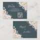 QR code wedding detail card inserts for your spring or summer wedding with elegant white, cream and blush watercolor flowers, pastel greenery and a navy blue background. Use these cards to direct your guest to your wedding website for more details about your accommodations, directions or to RSVP online.