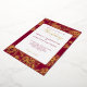 Vintage style Wedding Invitation card features a floral dahlia line art illustration in gold with a rich wine red colour scheme. Elegant and classy script font works well and gives it a polished finish. This card is ready for you to customise with the details of your upcoming celebration. Part of an ever-growing range of stationery.