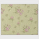 Vintage Floral gift wrap. Green paper with pink roses.