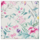 Vintage Flower Garden Rainbow Butterfly WHITE Fabric
