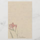 Beautiful vintage Botanical Art of red Gladiola Flowers on this Linen Look Stationery.