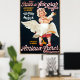 This image is of a vintage French foie gras advertisement. A young girl is holding a nice fat goose.