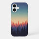 A layered retro forest scene with smooth gradients and pine silhouettes creating a nostalgic calm feeling.