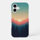A layered retro forest scene with smooth gradients and pine silhouettes creating a nostalgic calm feeling.