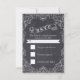 Vintage scroll leaf frame and chalkboard wedding RSVP response/reply card featuring a white vintage frame of scroll leaves on a charcoal grey chalkboard or blackboard background and your text in a scroll banner. A modern and contemporary approach to a vintage theme. This retro template design is part of a wedding set, is fully customizable and can be personalized.