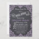 Purple vintage scroll leaf frame and chalkboard wedding bridal shower invitation featuring a lilac purple vintage frame of scroll leaves on a charcoal grey chalkboard or blackboard background and your text in a white scroll banner. A modern and contemporary approach to a vintage theme. This retro template design is part of a wedding set, is fully customizable and can be personalized.