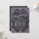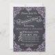Purple vintage scroll leaf frame and chalkboard wedding rehearsal dinner invitation featuring a lilac purple vintage frame of scroll leaves on a charcoal grey chalkboard or blackboard background and your text in a white scroll banner. A modern and contemporary approach to a vintage theme. This retro template design is part of a wedding set, is fully customizable and can be personalized.