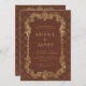 This elegant wedding invitation features an ornate vintage gold frame on a distressed rust-coloured background in imitation of an antique book cover. Customize the gold-coloured text with your names and wedding details. The reverse side repeats the frame motif and provides space for wedding details, along with a QR code guests can scan to visit your website and RSVP, which saves the cost of printing and mailing separate RSVP cards.