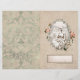 Title page for journals and scrapbooks. Features a vintage vignette of a young French woman in a meadow with a pink rose floral frame with a nameplate below.