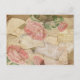 A pretty vintage collage, of french letters and post cards with faint pink roses overlaid at the top and bottom