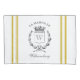 A vintage, French, etched graphic family crest and mustard yellow ticking tape stripes are the perfect addition to your French country home decor on this set of custom pillow cases. Don't forget the finishing touch of personalization with your monogram and family name on the front side and your individual names on the back of each pillow case.