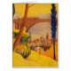 Retro Eurpoean Travel Advertisements - Yellow, Green Spring Colour Tones Railroad Travel Ad - Train, Stone Bridge and Historical Village Illustration Painting