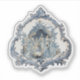 This vintage Christmas sticker features a beautiful toile nativity within an old distressed French frame.