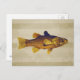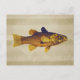 An antique vtinage illustration of a fish in golden brown colours. Background is a striped vintage pattern in a light brown colour. Great for those who love fishing.