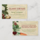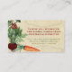 Classy aged style background on this business card featuring vintage botanical fruits and vegetables, perfect for cooking classes, edible gardening, personal chef, caterer or catering and other culinary pros.