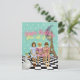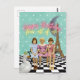 Fun and funky altered art vignette features a trio of schoolgirls vintage tinted photo cutout, a duck with a crown, the Eiffel Tower, a crescent moon and "Happy Birthday from all of us" in pink and yellow neon text