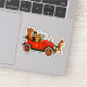 This custom cut waterproof vinyl sticker features anthropomorphic funny cartoon cats and kittens in a retro car. This design comes from Cats in Catland, a circa 1905 painting by famous English cat cartoonist Louis Wain. This image depicts a humourous group of partying cartoon cats celebrating their ride in an open antique motorcar with a jolly Punch jester hood ornament.