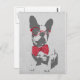 A cute, funny, trendy vintage animal French bulldog illustration wearing a red polka dot bow and glasses. This charming and whimsical design captures the essence of the French bulldog's unique features, enhanced with a vibrant red polka dot bow, and red glasses adding a pop of color and a hint of retro style. This illustration is a delightful blend of cuteness, humor, and vintage aesthetics. It can be used for animal lovers’ home décor, wall art, stationery, or special occasions.
