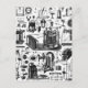 Various products imprinted with an old 1800's engraving of various machines, tools and gadgets.