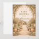 Inspired by a serene countryside estate, this design features a softly winding garden path framed by blooming roses and lush greenery. The warm neutral palette and classic botanical details create a timeless, romantic atmosphere—perfect for an elegant baby shower with a refined, nature-inspired feel. Ideal for spring or summer celebrations that lean classic rather than trendy.