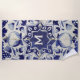 Vintage Geometric Blue White Tile Monogrammed Beach Towel