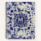 Vintage Geometric Blue White Tile Monogrammed Notebook