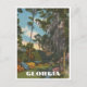 A vintage image of a Georgia garden illustrates this beautiful US state with flowers, azaleas, pines, and moss in the trees. The name Georgia at the bottom in a vintage font can be edited or removed.