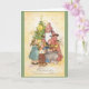 Retro / Vintage German Christmas card. Santa Claus giving toys to children. Happy Christmas! Merry Christmas!